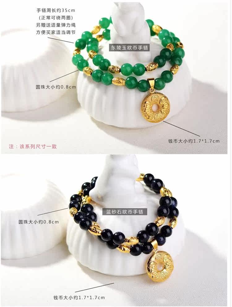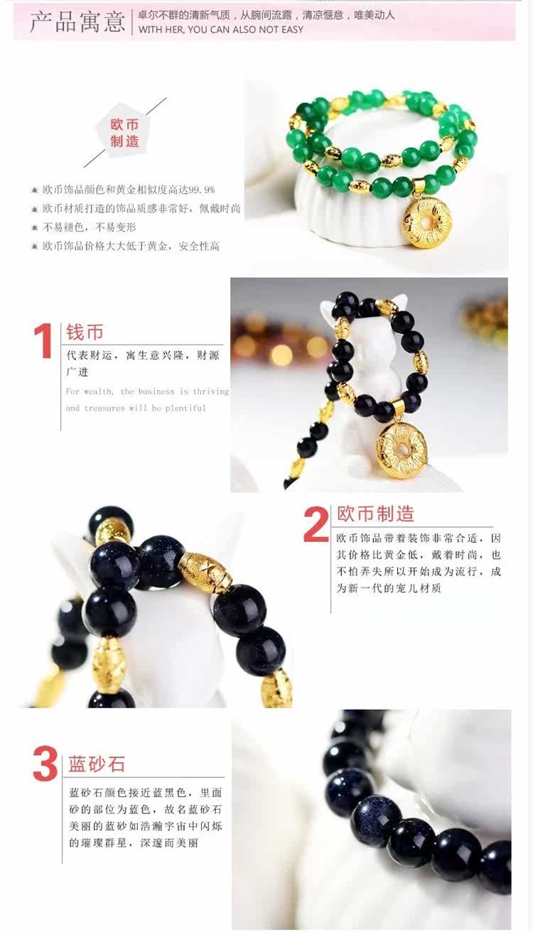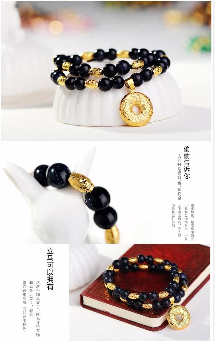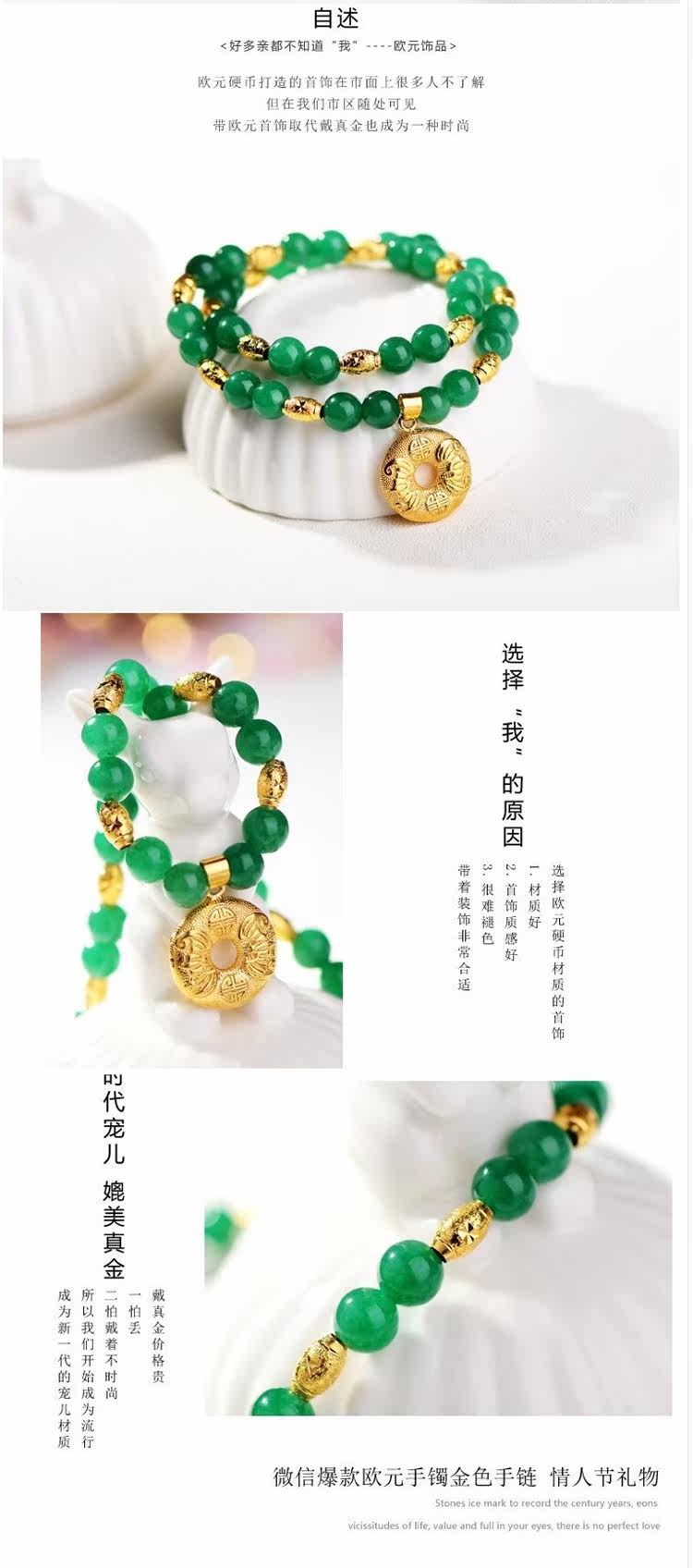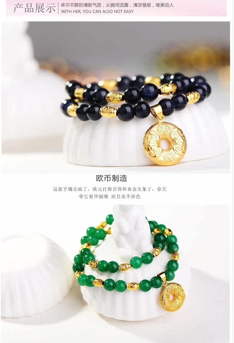 天然水晶石榴石玛瑙手链镶嵌欧币永不褪色仿黄金手串首女款首饰品