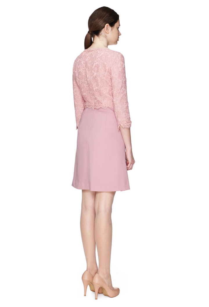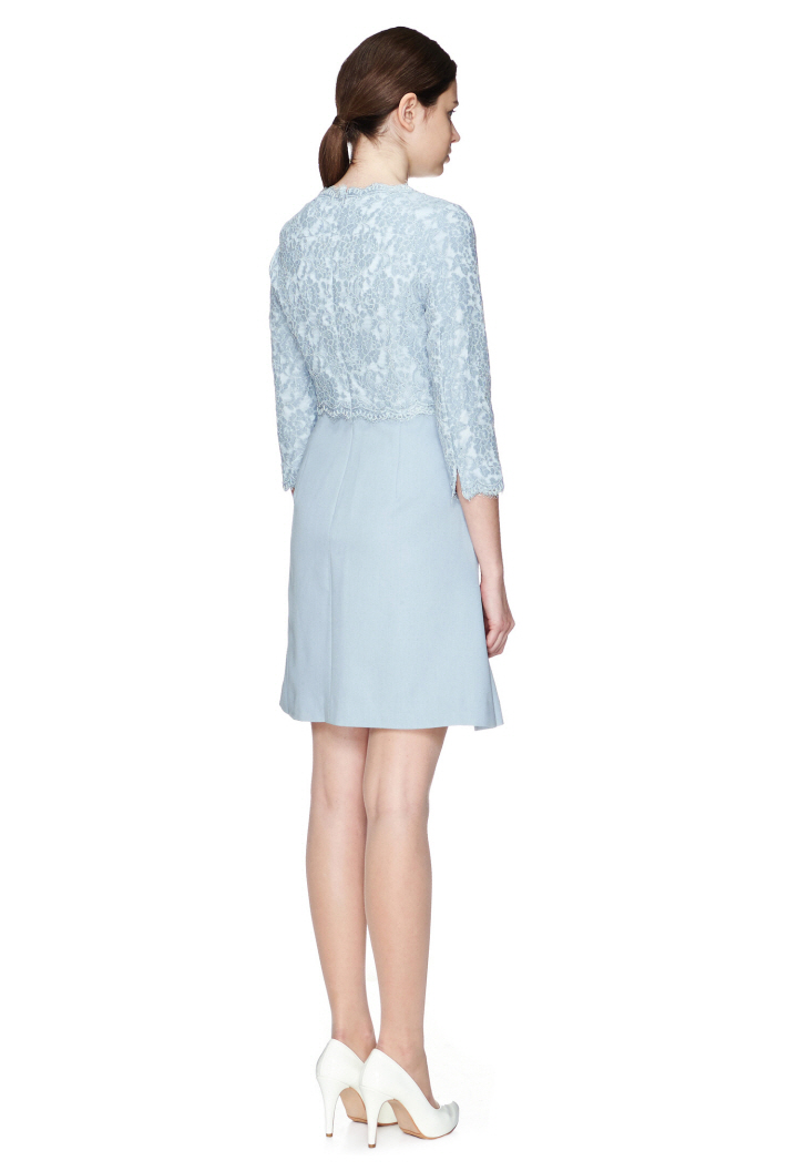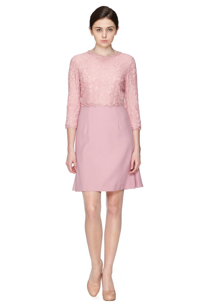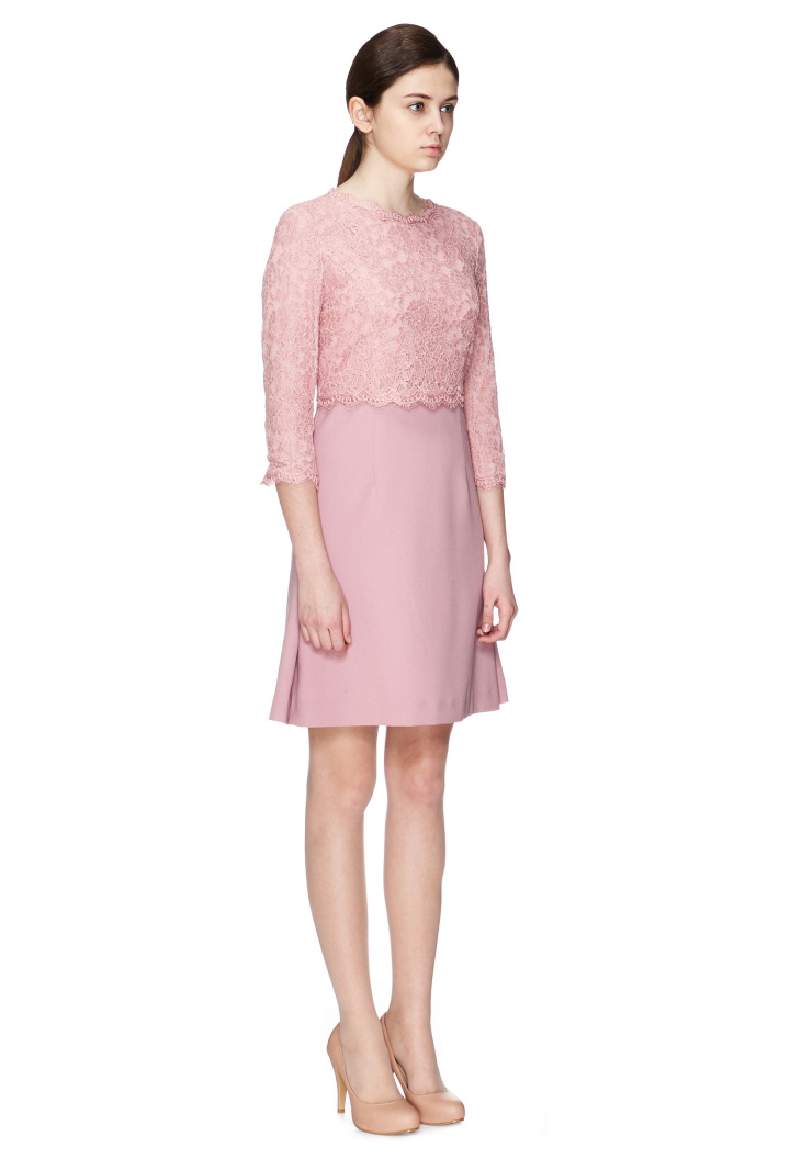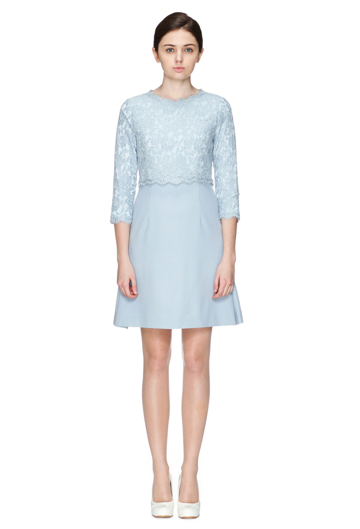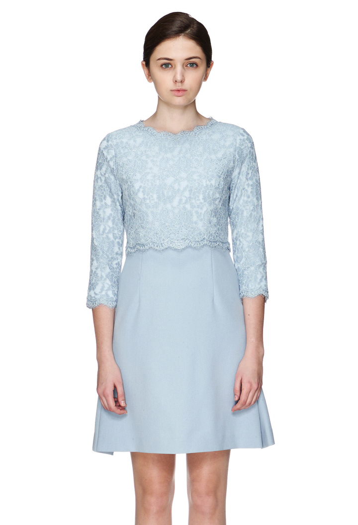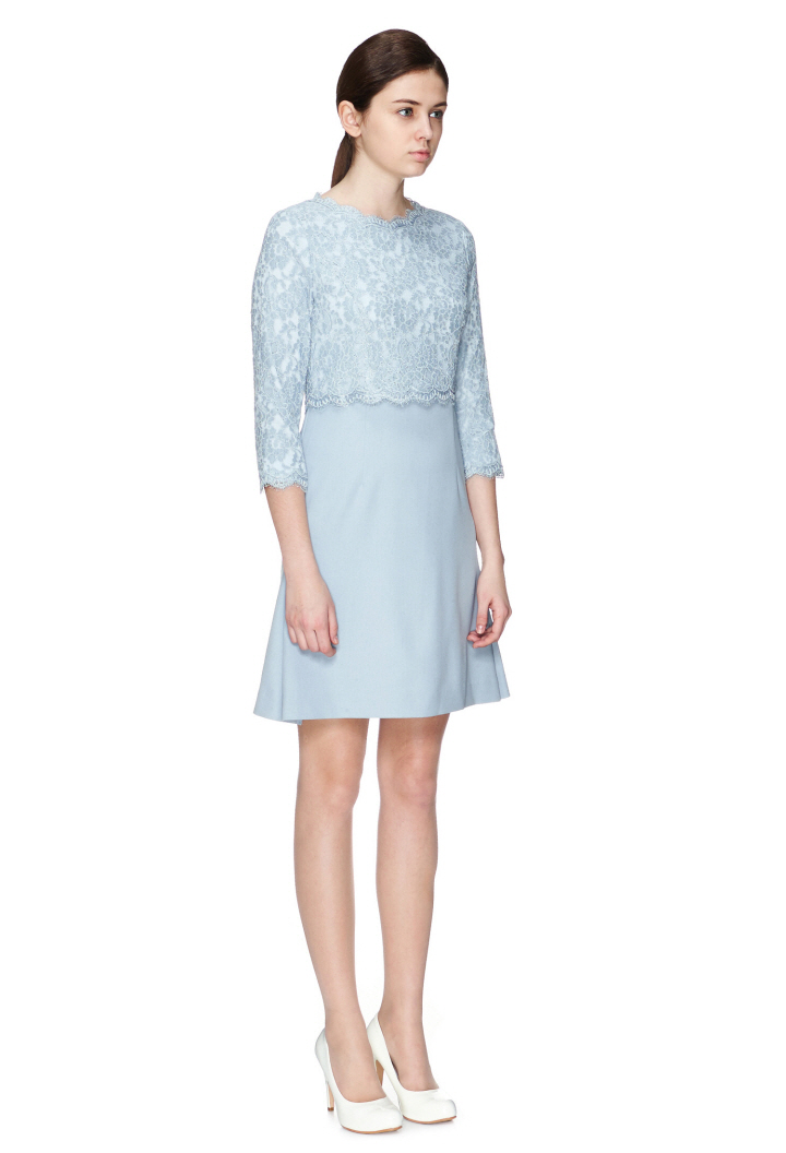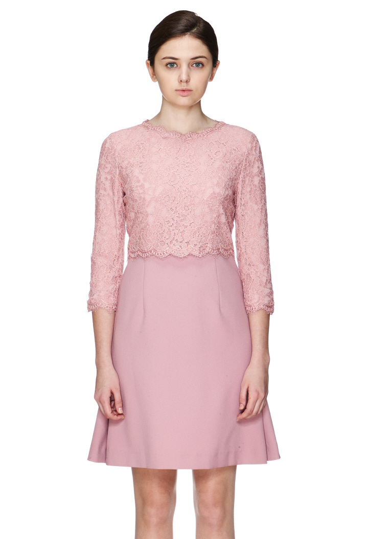 은은한 파스텔 컬러와 원피스 상단 레이스의 조합이 여성스러움을 부각시켜 줍니다