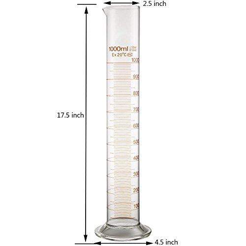 Glass Graduated Cylinder 1000ml Measuring Bottle Single Metric Scale with Cleaning Brush