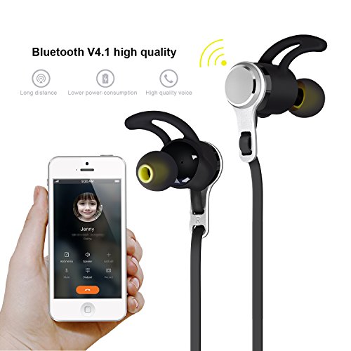 Feature : Fashion Appearance and Comfortable Design: Comfortable lightweight in-ear design with soft ear buds for added support. Offer 3 different size of silicone earmuffs, perfect for working out and any activities. With high-tech silicone materials to avoid the sweat permeate. / Bluetooth 4.1 Technology: Through Bluetooth V4.1 to communicate with your Bluetooth-enabled device, it brings you a powerful bass sound and amazing audio enjoyment. / Built in Microphone and Multifunction Control: Friendly buttons design that makes it easy to operate the play, stop and skip audio functions and answer a call with hands-free. / Battery Performance: Built-in rechargeable battery provides about 9 hours of talking time, 8 hours of music playing time. Take about 1.5 hours for charging. / Easy to Carry and Compatible with smartphones tablets computer laptop.