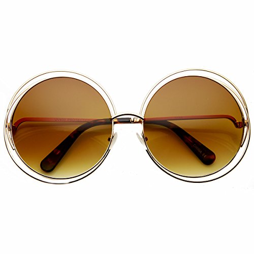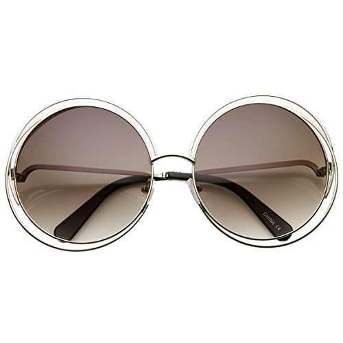Wonderful designer inspired oversized round sunglasses that features multi-wire metal frames. The cut-out details and circular shape present an sleek stylish look this season. Made with a metal based frame, metal hinges and polycarbonate UV protected lenses.