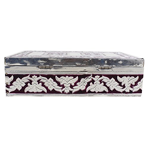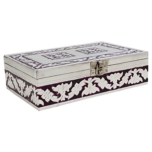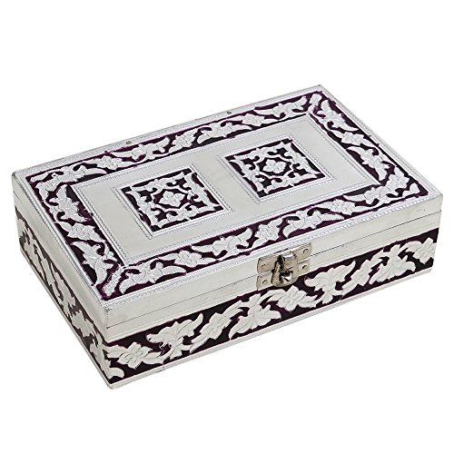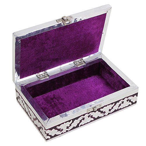 -. Feature : Dimensions: Length - 8 inches x Width - 5 inches / Hand carved in durable wood with metal embossed sheet / Adorned with beautiful carvings & a lined black velvet interior, this Decorative Box makes a little royal piece for your dressing table / Store your accessories, jewelry, trinkets, keepsakes, knick knacks. A perfect organizer for your home décor which can also be used as a gift box / Dated back to 400 years ago in the Mughal period, artisans of Saharanpur started wooden carving work and now 1,00,000 artisans are involved in this industry making world's finest handicrafts