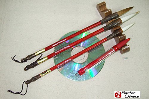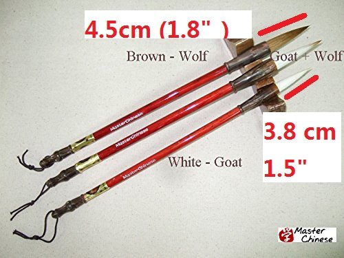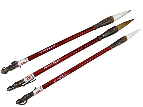 MasterChinese Fine Chinese Calligraphy / Sumi Drawing / Kanji Brush Set (Goat Hair, Jian Hair, Wolf Hair) - Medium