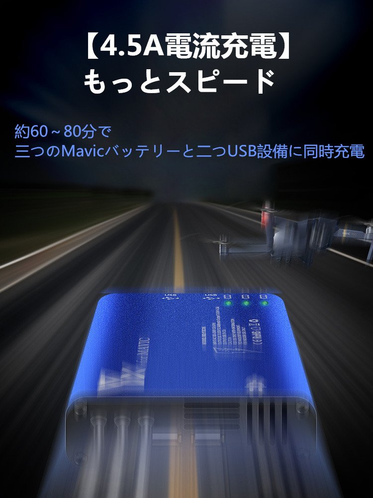 Designed exclusively for DJI Mavic Pro, 4.5A fast charge, you can charge 3 Mavic batteries + 1 remote control + 1 smartphone / tablet at the same time in about 60 to 80 minutes.