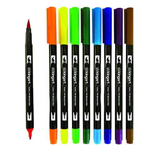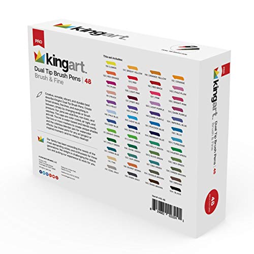KINGARTデュアルチップブラシペンは、クリエイティブで用途が広く、躍動感があり、そして丈夫です。端やブラシの圧力を変えるだけで、太い線、細い線、およびその間のすべてを作成できます。当社のペンは酸を含まず、無毒で、無臭です。キャップは色分けされ、気密性があり、アンチロールです。インクは水性で、簡単に混ざります。 2つ以上のマーカーを使ってユニークな色合いを作り、無色のブレンダーペンで水彩画効果を作りましょう。どんなアートプロジェクトやインスピレーションを得た瞬間にもこれらのペンを使用しましょう。