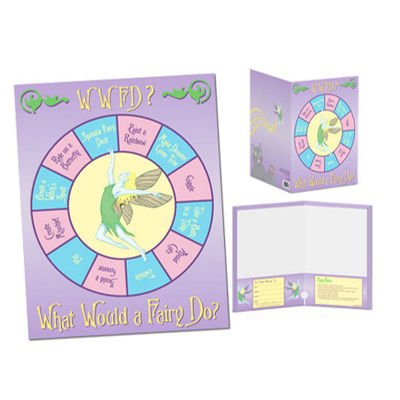 Fairies do the darnedest things. / Get familiar with the habits and tendencies of these magical creatures with this enlightening spin folder. Each 9 1/2-inches wide x 12-inches tall glossy folder features classic spinner technology; just flick the spinner and watch it twirl round and round before stopping on an answer. / Individually bagged. / Order yours today!