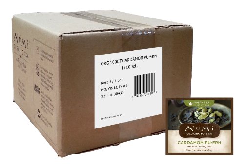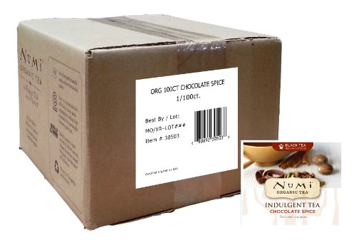 Numi's organic caffeine-free Chai blends rich Rooibos and a sultry blend of spices. Piquant cloves, nutmeg, and cinnamon mingle with sweet allspice, vivacious ginger and a kiss of cardamom. Great with milk!