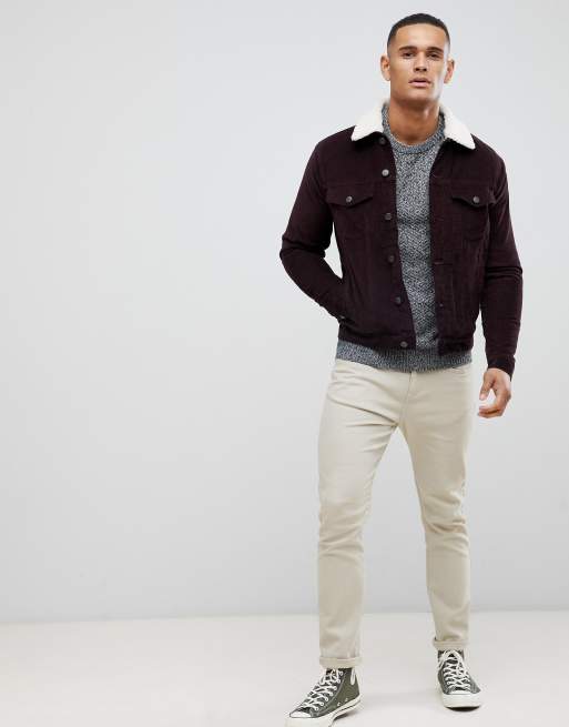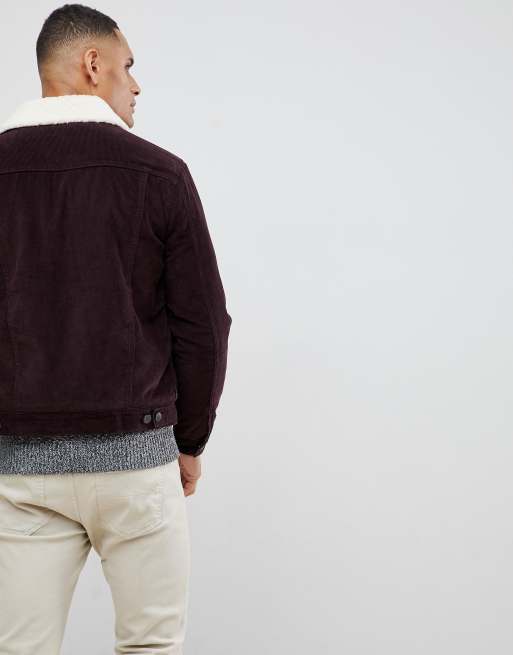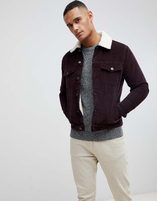 New Look corduroy jacket with fleece lining in burgundy