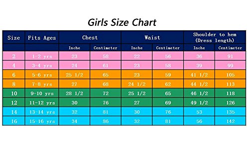 size 10 for 9-10 yrs: Chest,28.5"/Waist,25.5"/Shoulder to hem(dress length),46.5"