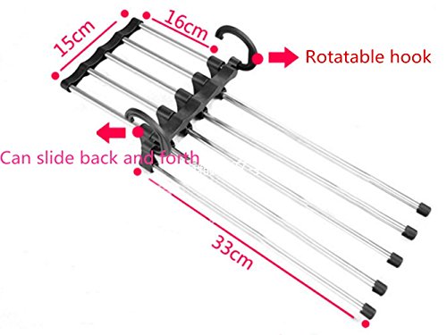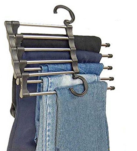 -. Binding : Kitchen -. Brand : FHD -. Color : Black -. EAN : 0713145597167 -. Feature : Main Material:ABS Stainless steel / Pants rack shelves organizer / Size(cm):47.5*15*7CM / Used for hanging your trousers neatly and convenientl / With tiny two tiny hooks at both ends of each rod; Two ways to hang this rack -. IsAutographed : 0 -. Label : FHD -. Manufacturer : FHD -. ProductGroup : Home -. ProductTypeName : HOME -. Publisher : FHD -. Studio : FHD -. Title : FHD Space Saving Hangers 5 in 1 Trousers Pants Denim Jeans Scarf Coat Hanger Hook Clothes Rack -. UPC : 713145597167