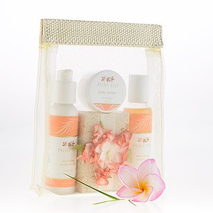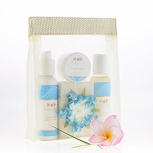 PURE FIJI Discovery Bag Coconut. A great starter gift. Includes soap (3.5 oz), body lotion (2 oz), body oil (2oz) and body butter (0.5 oz). This gift is available in a variety of exotic fragrances and includes the following items: A gentle, long-lasting creamy soap hand made from fresh coconut milk and a nourishing blend of exotic nut extracts. Generous amounts of virgin coconut oil and natural glycerin produce a luxurious, rich lather and is an especially mild cleanser for the entire body. An excellent lotion that has a complete bio-network of essential nutrients and vitamins for your skin's daily requirements, adding vitality and softness. A super moisturizing body butter that will instantly revive dry skin. An Exotic Oil which is a blend of cold-pressed virgin coconut oil and exotic nut extracts to moisturize, nourish and protect both skin and hair available in a variety of wonderful fragrances. Contains all you need to nourish and soften skin!Feature