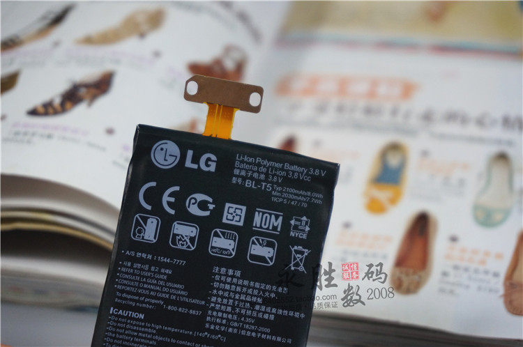 电池型号:LG BL-T5( 不确定是否可用,可对比此编号,是电池独一无二的编号)