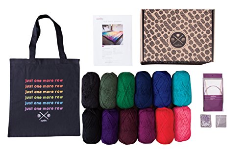 - KIT CONTAINS: 12 balls of Brava Worsted Yarn, 2 Black and 1 each in Wine, Solstice Heather, Dublin, Eggplant, Rouge, Fairy Tale, Red, Celestial, Grass, and Marina (100% Premium Acrylic; 218 Yards/100g per ball; total yardage 3,276), Hue Shift Afghan Knitting Pattern, US 5 (3.75 mm) Interchangeable Circular Knitting Needle Tips with 32" cable, Locking Stitch Markers, Bent Tip Tapestry Needles for finishing, and a 100% Cotton Canvas Tote Bag with Knit Picks exclusive design.