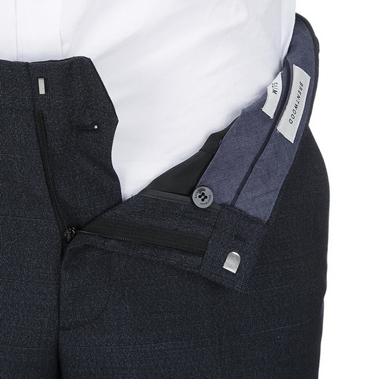 - 모던한 그리드 조직 디자인의 남성 수트 팬츠.
