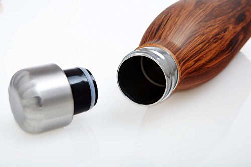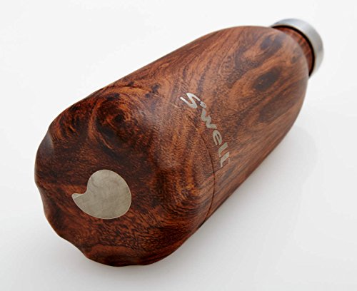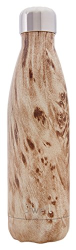 This insulated S'well water bottle will keep a beverage cold for 24 hours or hot for 12. Hand-painted woodgrain pattern. Made from BPA-free, double-walled stainless steel. A vacuum seal keeps liquids and carbonation fresh. Packaged in a cardboard tube for easy gifting.
