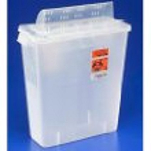 Studio : Covidien Publisher : Covidien Product Description For quick, point-of-use sharps disposal of needles and syringesCan be mounted at the bedside or in exam roomsAccommodates larger syringesEconomical horizontal drop maximizes use of container volume8 qt. 0