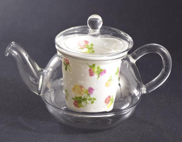 ガラスのティーポットに有田焼の茶こしがおしゃれ☆日本茶・紅茶・中国茶・ハーブティーなどいろんなお茶にご使用下さい♪ |
