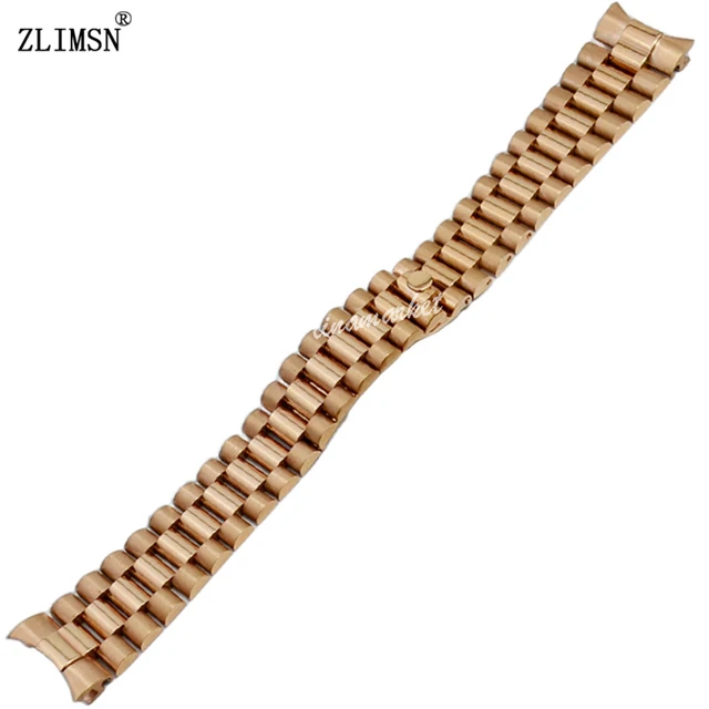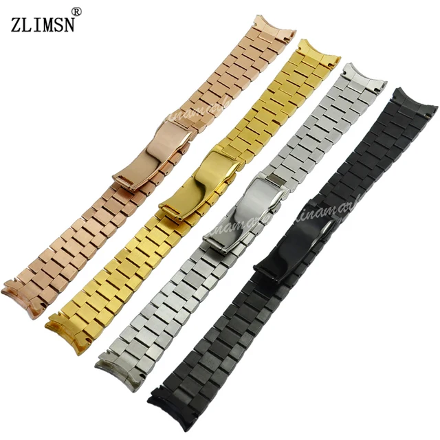 ZLIMSN 13 미리메터 고체 316L 스테인레스 스틸 스트랩 시계 배포 걸쇠 블랙 골드 로즈 골드 3 링크 손목 팔찌 곡선 엔드
