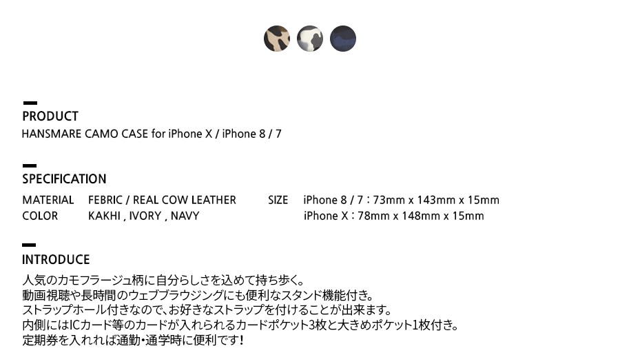 | 商品名 | HANSMARE CAMO CASE for iPhone X / iPhone 8 / 7 |