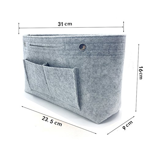 Product DescriptionMaterial: Felt Fabric Dimensions: (L)11.02" * (H)7.08" * (W)4.13" Structured oragnizer bag keep your items easy find and well organized The felt fabric bag keeps its shaped and protecting your items. Easier to change bags. It can be foldabled when not in use, save space. Package included: 1 x Organizer bag0