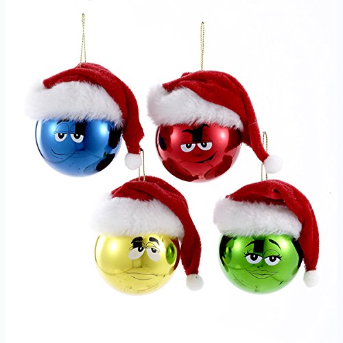60MM M&M BIG FACE BALL W/HAT ORNAMENT SET OF 4