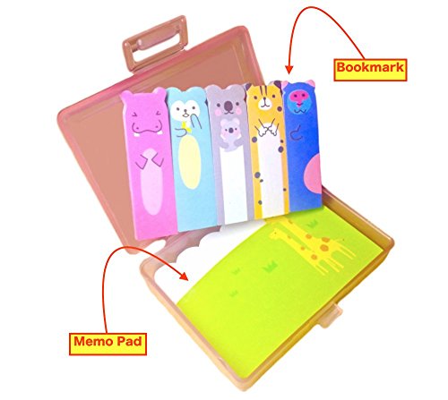 Cute Kawaii Japanese Office and School Supplies Bear Giraffe Animal Post-it Bookmarks Index Tabs Sticky Flags Note Memo Pad - Portable Hard Plastic Case, Holder Storage Box Set