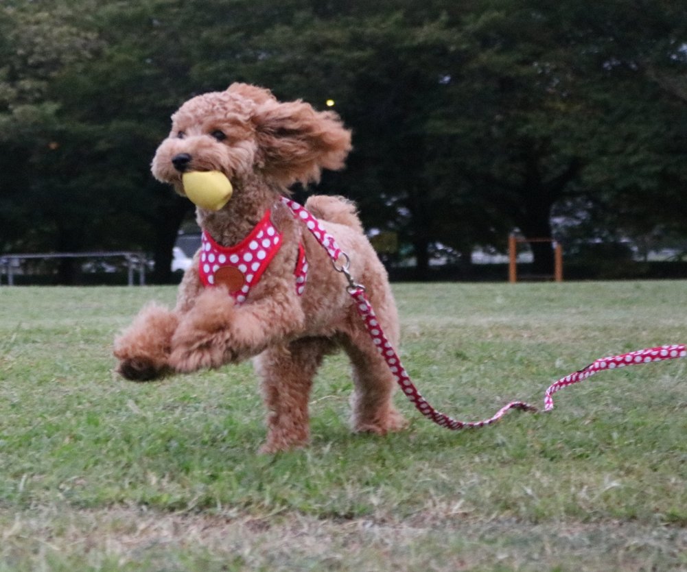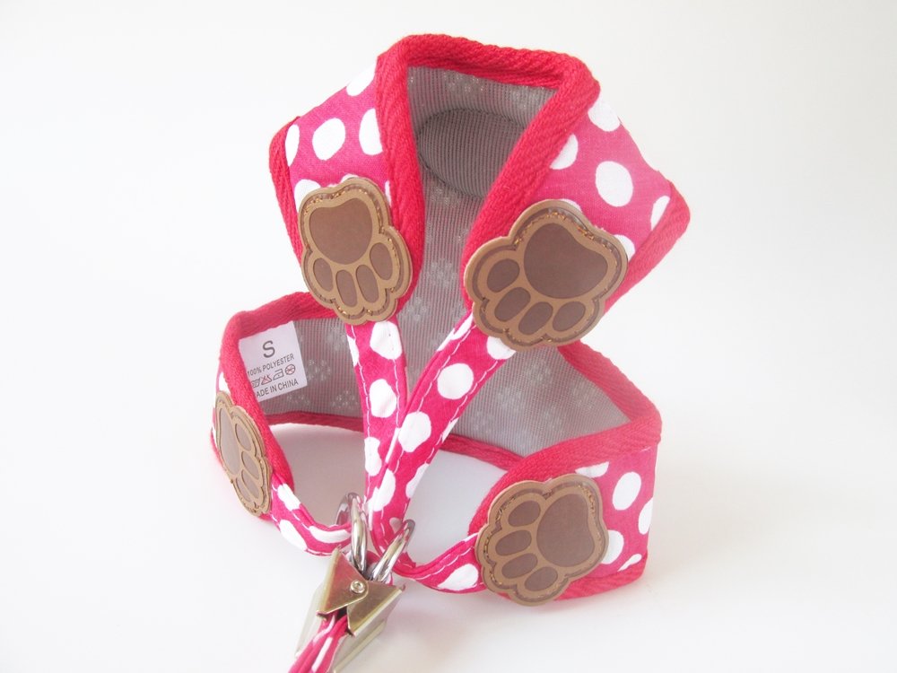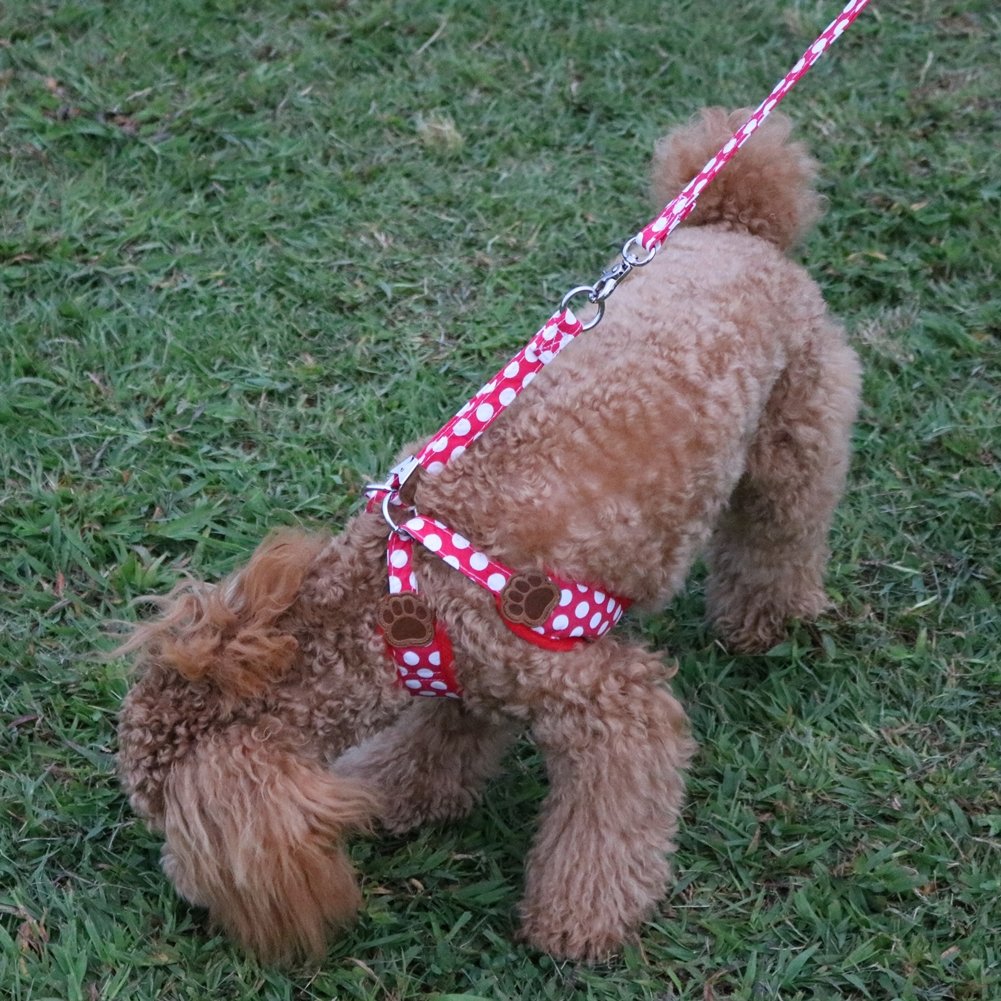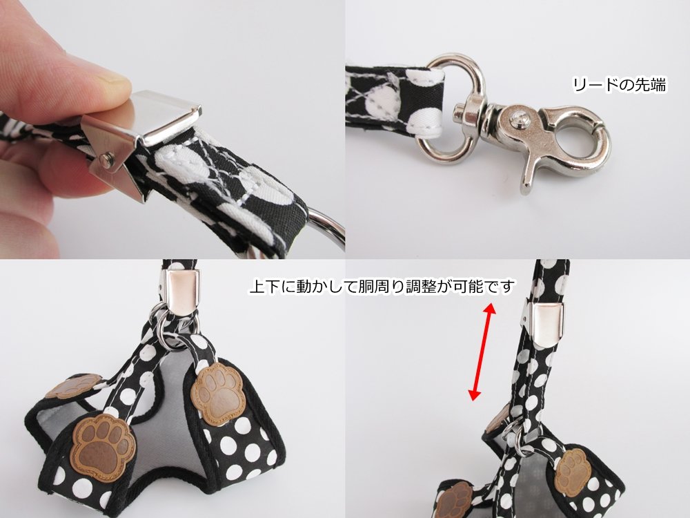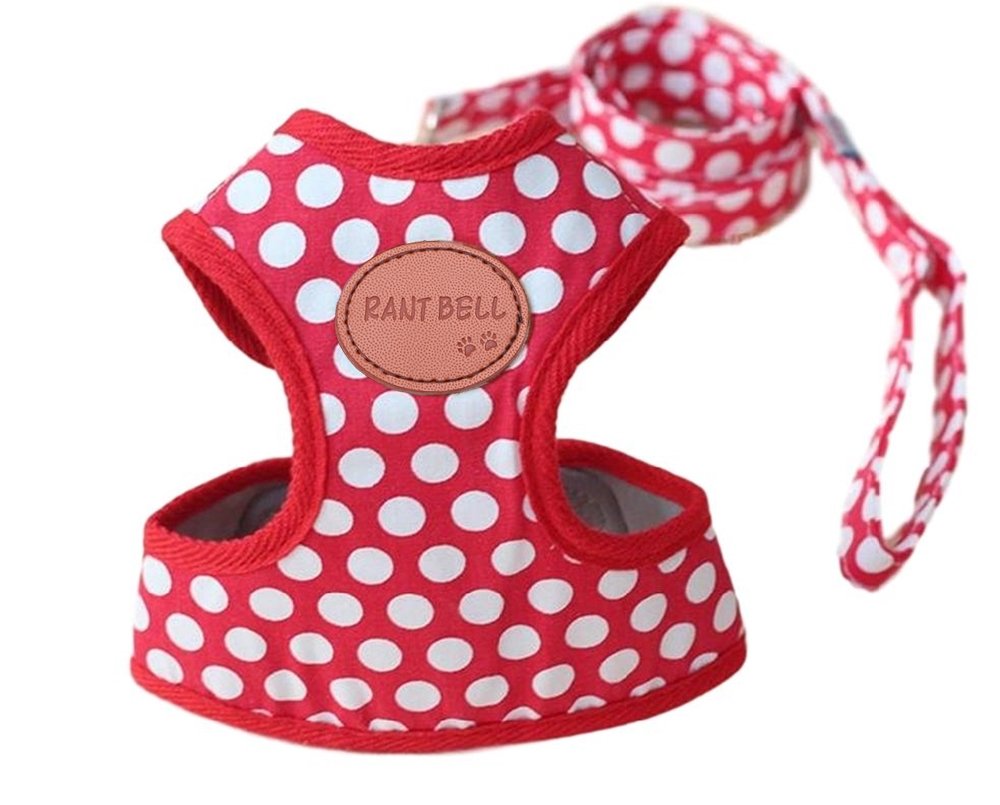 【Rant Bell】 It is a harness lead 2 point set for small dogs with cute dot pattern and meat balls.