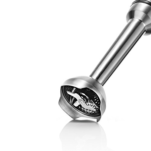 -. Feature : Besonders kraftvoll: Starker 750 Watt Motor für extrem schnelle und hervorragende Verarbeitung / Perfekte Ergebnisse: 12 Geschwindigkeiten plus TurboTaste und 4-Klingen-Messer QuattroBlade Pro / Hochwertige Verarbeitung: Gehäuse und Mixfuß aus Edelstahl sind besonders wertig und sorgen für echte Profiqualität / Einfache Bedienung: große Tasten, SoftTouch Oberfläche und patentierte Klick-Verbindung ermöglichen unkompliziertes Arbeiten / Hochwertiges Zubehör: Mit skaliertem Messbecher und Deckel zur Aufbewahrung von Speisen