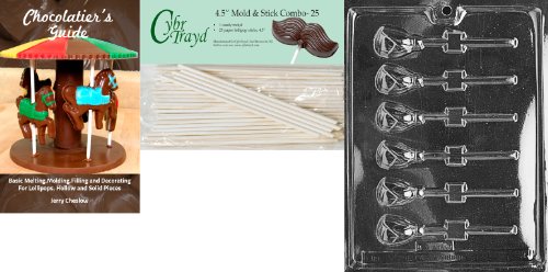 Cybrtrayd 'Tea Rose Lolly' Fruits and Vegetables Chocolate Candy Mold with 25 4.5-Inch Lollipop Sticks and Chocolatier's Guide