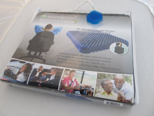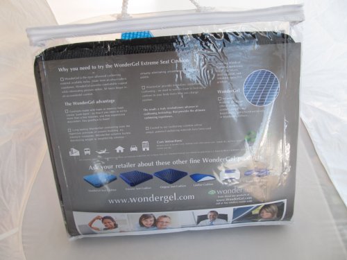 Studio : Wondergel Publisher : Wondergel Binding : Health and Beauty Product Description Wondergel (Intelli-gel) is the most advanced cushioning material available today. Made from an ultra-modern copolymer, Wondergel provides comfortable support while eliminating pressure points. This lets you sit hours longer in comfort. Cushions made with traditional cushioning material or memory foam create "push-back", so that if you need to sit for more than a few minutes, you may experience discomfort. Long-lasting and durable Wondergel cushioning uses the ingenious principle of column buckling. As pressure increases, Wondergel columns buckle, distributing the weight to neighboring columns. This virtually eliminates uncomfortable pressure points. Wondergel provides immediate, continuous cushioning - no need to wait for foam to heat up or conform to your body every time you change position. The result: a truly revolutionary advance in cushioning technology that provides the ultimate cushioning experience. Wondergel was created by industrial cushioning scientists whose unique, patented cushioning materials have been used in leading brands of footwear, mattresses, medical products, sporting goods, and industrial protection products. Nothing is more superior in cushioning than Wondergel. The Wondergel Extreme seat cushion is a full 2" of 100% Wondergel and includes a washable black fabric cover. This cushion is a mid soft feel, firmer than the Roll Go and Original but softer than the Doublegel. Very supportive. A highly versatile and portable cushion for multiple uses. 0