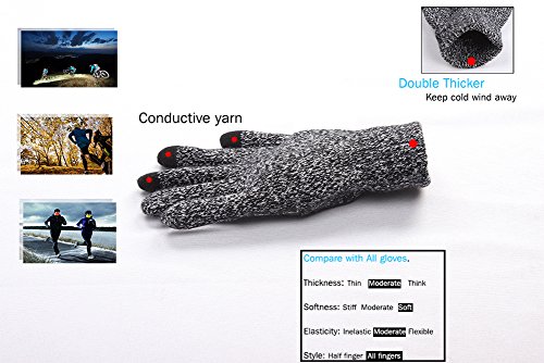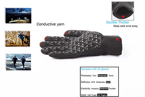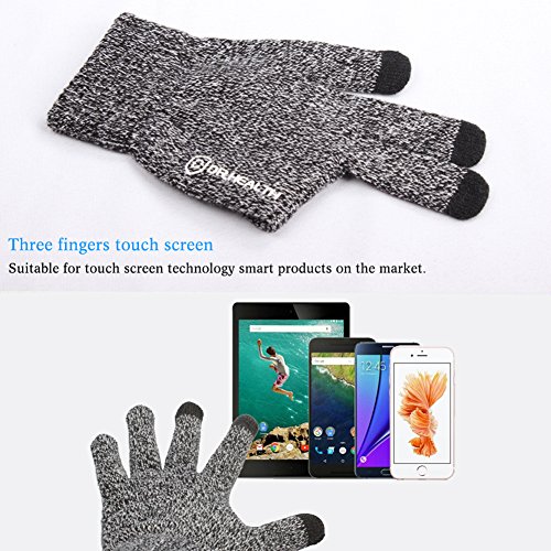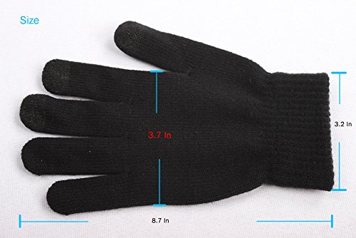 Touchscreen Glove are compatible with all capacitive touch screen devices. Forget frostbitten fingertips. Numb thumbs are dumb. Scroll, pinch and swipe painlessly all winter long. The thumb, index and middle finger tips that allow you to navigate your touch screen device as though you were using your bare fingers.These elastic gloves fit most people, and can be worn with any type of formal or casual outfit, not only serve the purpose of a fashion accessory, but also to keep hands warm. These soft winter gloves are really great gifts both for men and women of any age.