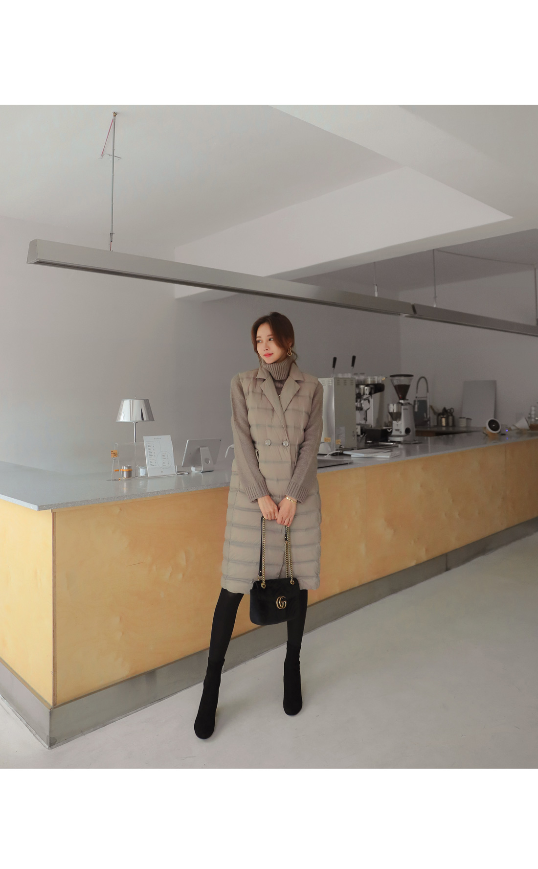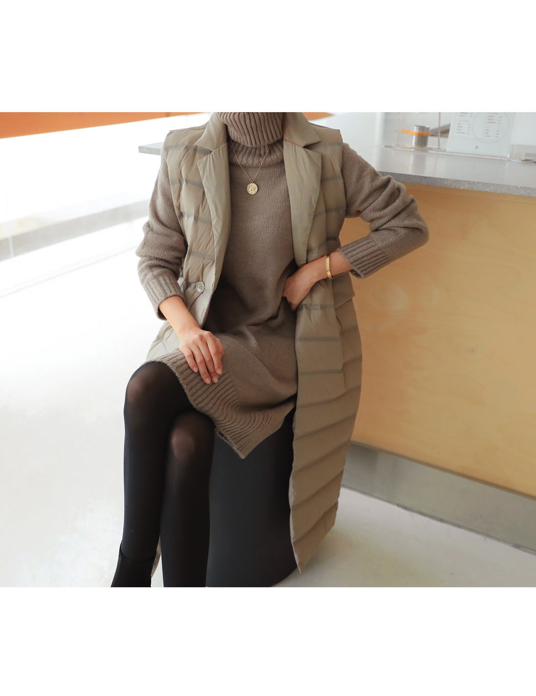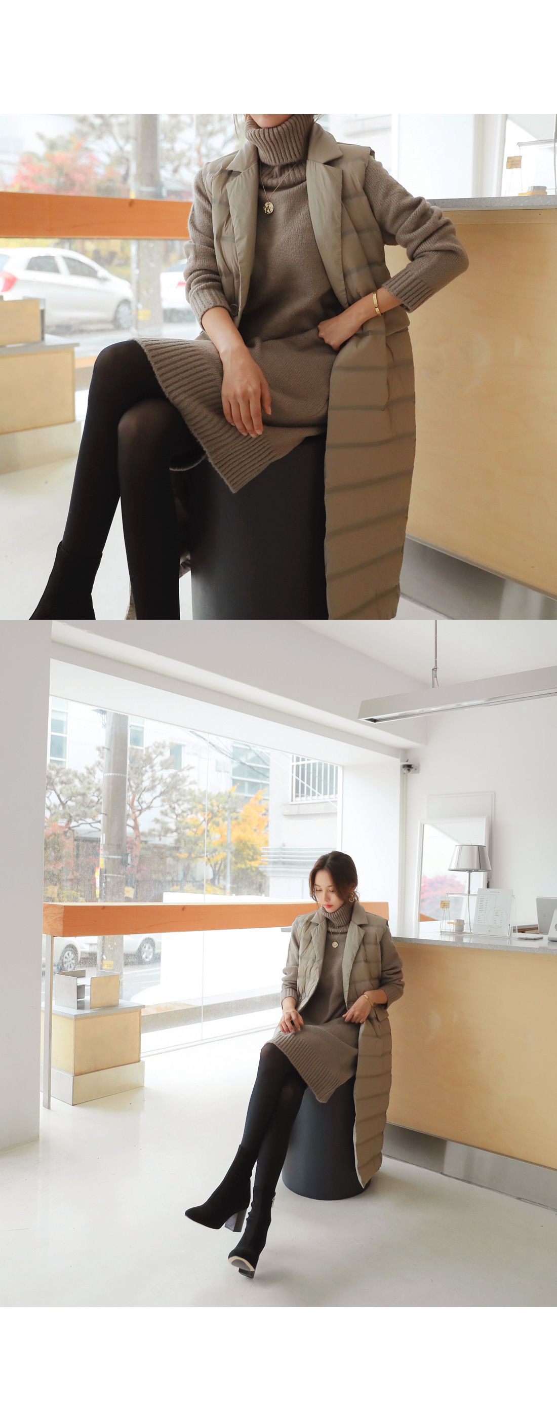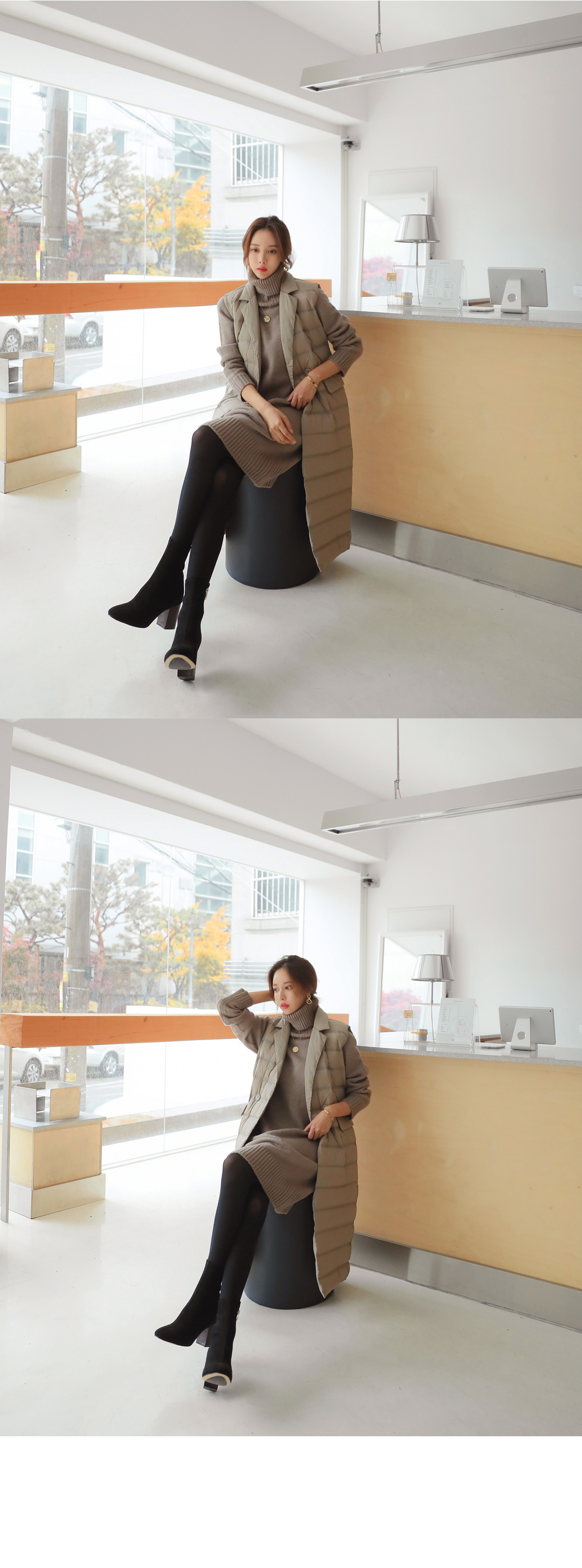 MD COMMENT 오리털100% 충전재로깃털처럼 가벼우면서 따뜻한 착용감을 느낄 수 있는"경량카라조끼패딩"을 소개해드릴게요여성스러운 무드가 느껴지는 디자인으로 고급스러운 느낌을 주면서 일자로 툭 떨어지는 실루엣이구요 네크라인이 허전해 보이지 않게카라넥으로 포인트를 주면서 허리 옆쪽으로 볼드하게 라인을 주어더 슬림하면서 길어보이게 연출해준답니다 롱한 기장감으로 체형커버 효과를 주면서 간절기에는 아우터로-한겨울에는 핸드메이드 코트안에 레이어드해서 입을수 있는 너무 부하지않은 디자인으로 활용도 높은 롱조끼에요 솜털 90%의 높은 함유량으로 초경량라이트다룬처럼 가볍지만 보온성이 좋구요-!디자인과 퀄리티가 좋은 아이템이라 소장 적극 추천드려요-!COLOR/SIZE 베이지,블랙FREEMODEL FITTING 베이지/FREE