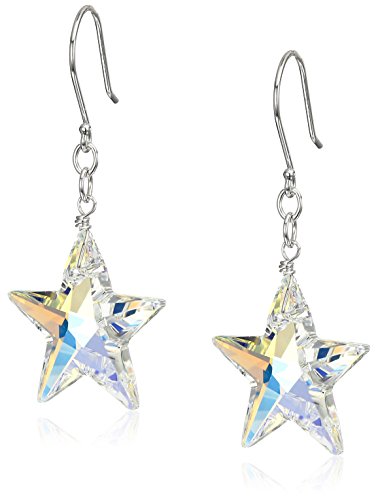 Sterling Silver with Swarovski Elements Crystal Aurora Borealis Star Drop Earrings