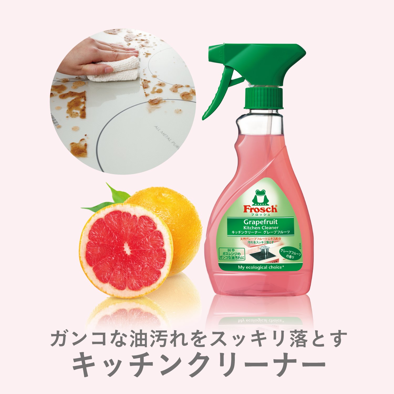 Kitchen Cleaner Grapefruit firmly removes gangy oil stains such as IH, gas range, ventilation fan.