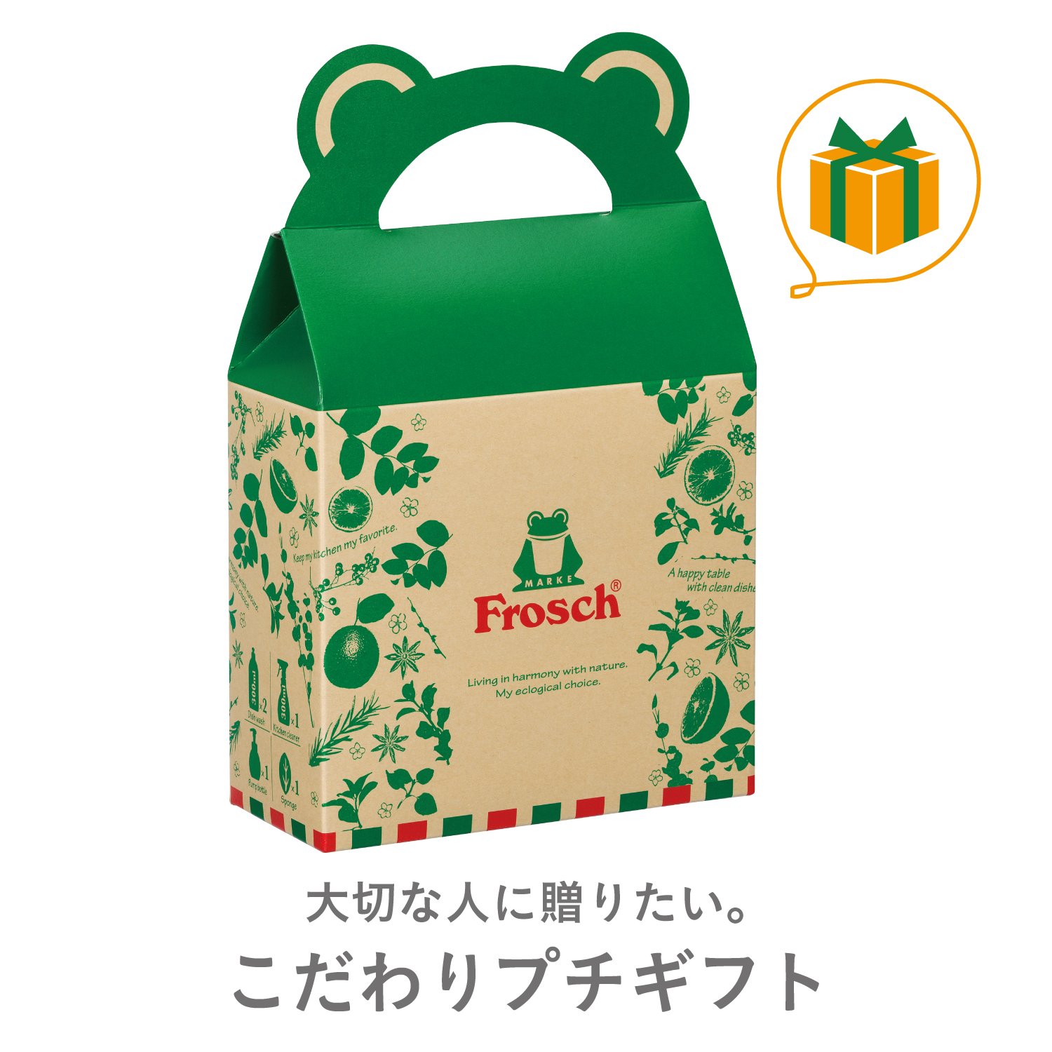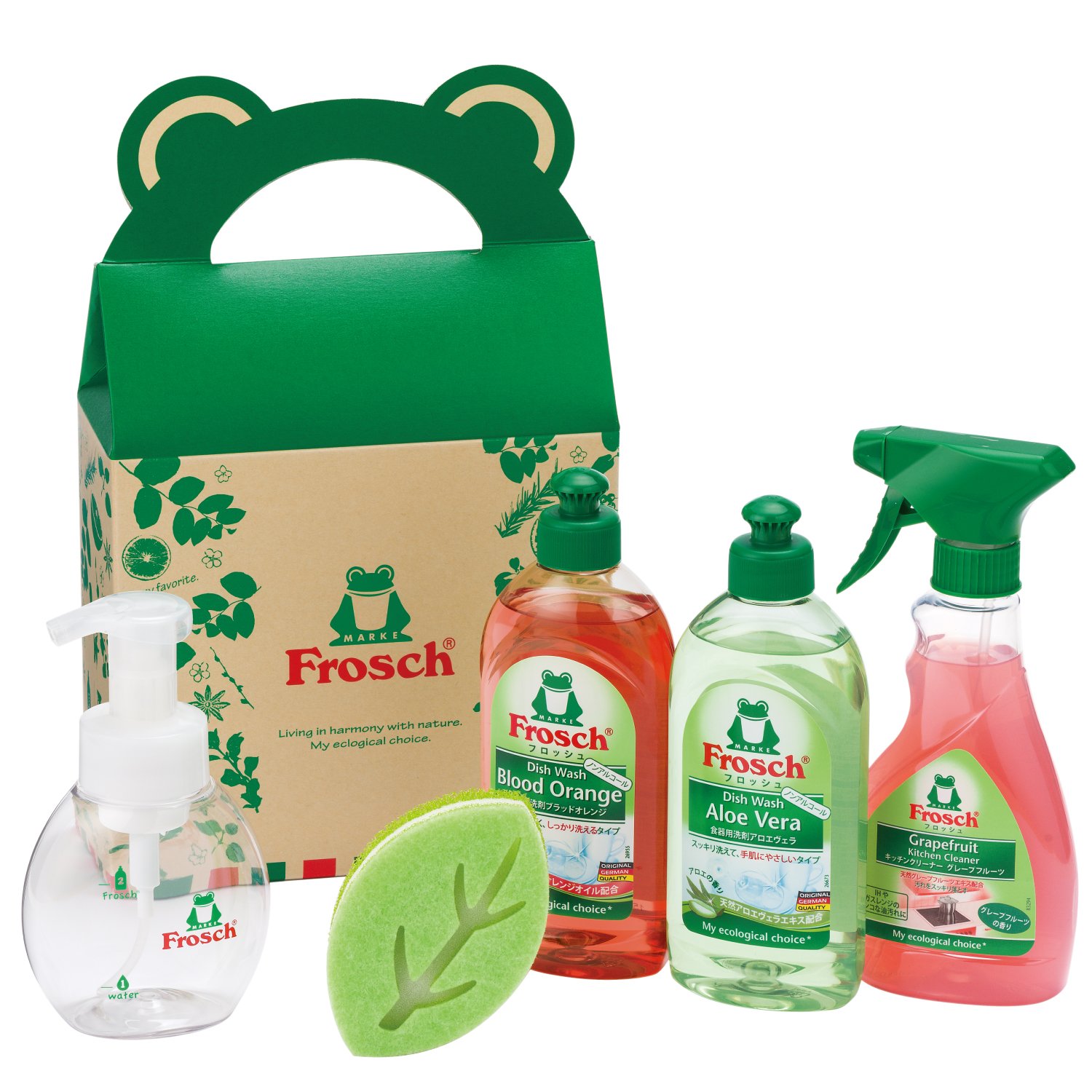 Froush gift box is a set of dishes detergent Aloe Vera 300ml, Blood Orange 300ml, Kitchen Cleaner Grapefruit 300ml, dish detergent exclusive foam pump, sponge set.