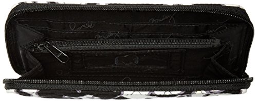 Vera Bradley's spacious Accordion Wallet is made of soft quilted fabric on the outside with coordinating fabric on the inside. This zip around style wallet features 12 card slots, a center zippered coin compartment and multiple bill slots. There is also an interior clear ID slot. It measures approximately 7 1/2 inches (L) x 4.5 inches (H) x 1 inch (W). Location of pattern varies with each wallet. Spot clean with a damp cloth and mild soap. Patterns with solid color fabric interiors are designed for Vera Bradley Outlet stores.Feature