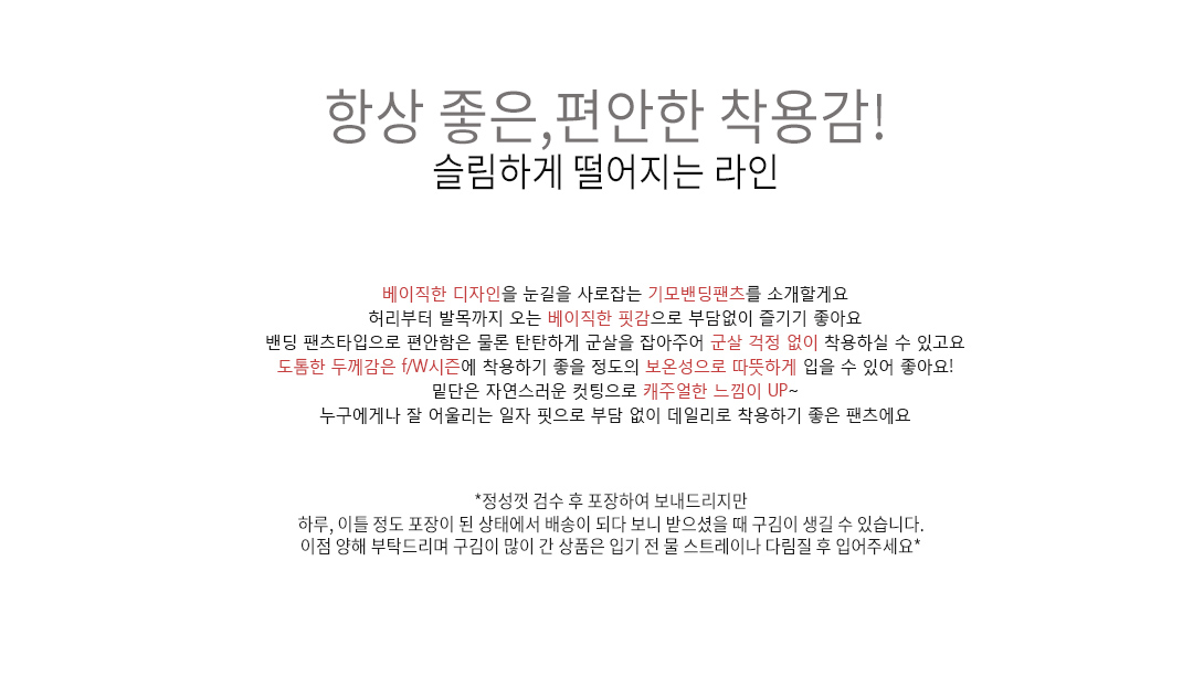 .같은 사이즈라도 체형에 따라 핏감이 조금씩 다를 수 있습니다.