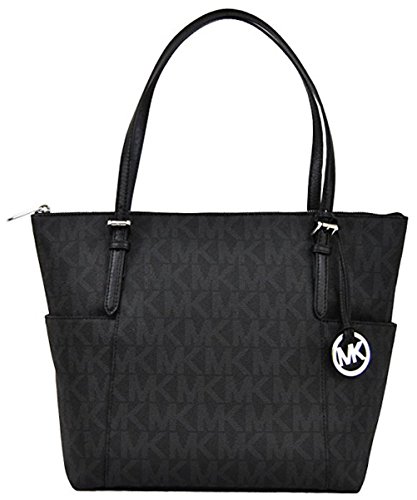 Binding : Apparel Product Description This Michael Kors Jet Set Logo Signature PVC top zip tote will effortlessly take your work bag to trendy night bag. Beautiful double handles, zip top, zipper pocket take this bag in an elegant new direction. Black signature MK style goes with any outfit. Made of durable and resistant PVC, this bag can be used every day for any occasion. 0