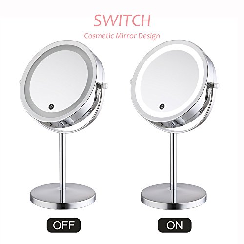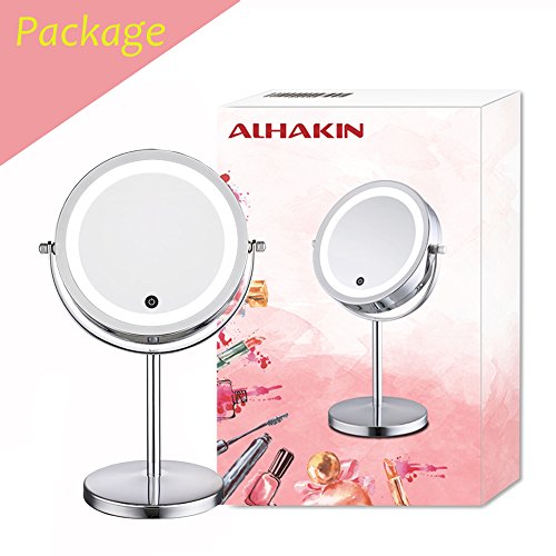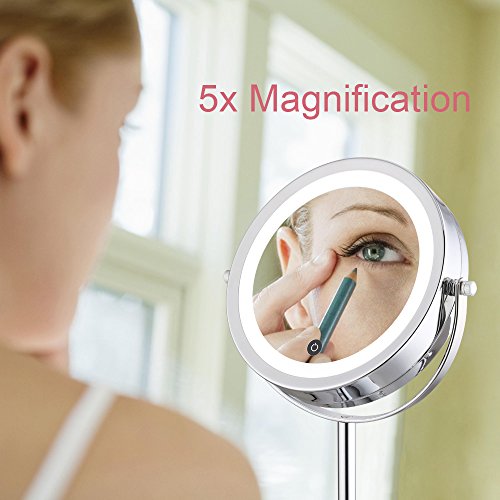 Lighted Makeup Mirror - LED Vanity Mirror with lights 5x Magnification 7" Touch Screen Two-Sided Travel Makeup Mirror Polished Chrome ALHAKIN
