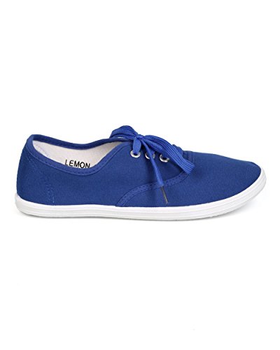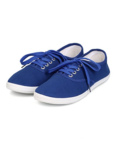 Refresh ED21 Women Canvas Round Toe Classic Lace Up Sneaker - Royal Blue