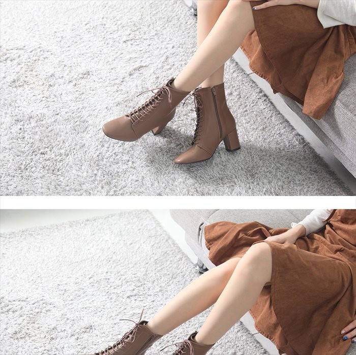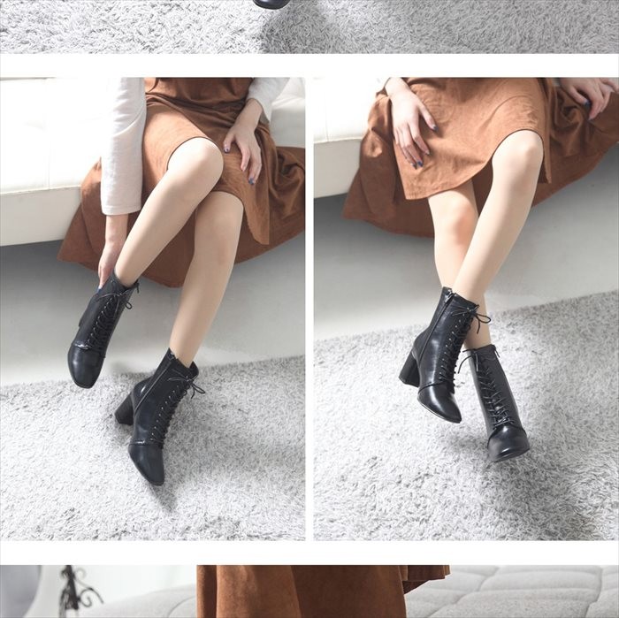 商品名:ブーティ レディース ブーティー チャンキーヒール 太ヒール サイドジッパー 2017 秋冬 ファッション 靴 婦人靴