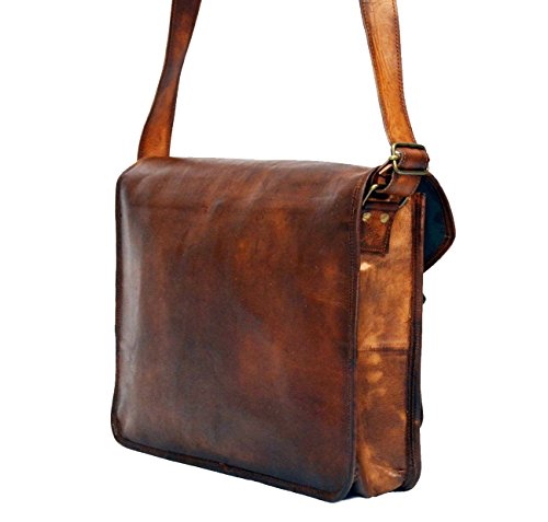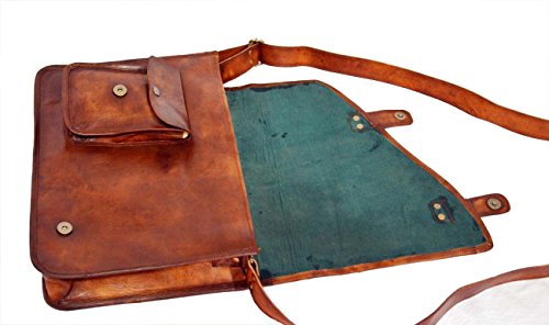 Product Description Made using 100% genuine goat leather. 15-inch messenger bag lasts long. The leather is put through a traditional process called 'vegetable tanning' to help retain the original characteristics of the material for flexibility and sturdy. Adjustable shoulder strap enough for crossbody. 3 inner compartment and 2 zipper pocket. New genuine leather bag handcrafted with vintage style. Best for gifting solution. Use as leather bag, Leather messenger bag, leather laptop bag, leather satchel bag. 0