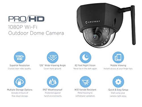 -. Title : Amcrest ProHD Outdoor 2 Megapixel WiFi Wireless Vandal Dome IP Security Camera - IP67 Weatherproof, 2MP (1920 TVL), IP2M-851