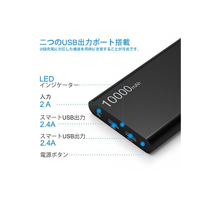 원본상품명: Kinps モバイルバッテリ 大容量 急速充電【スマト充電技術】外付バッテリ 二つのUSB出力ポト Apple/Android適合性スマトテクノロジ搭載 [行輸入品] 10000mah