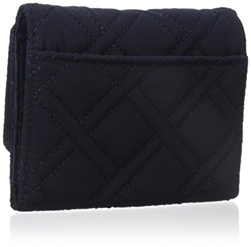 PERFECTLY SIZED: Our Vera Vera Petite Trifold Wallet measures 5 x 4 inches and featuring 1 back slip pocket, 1 interior bill pocket, 4 card slips, a zippered coin pocket, an ID window, and pin-snap closure