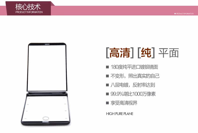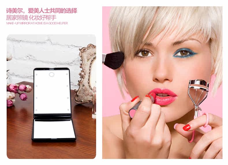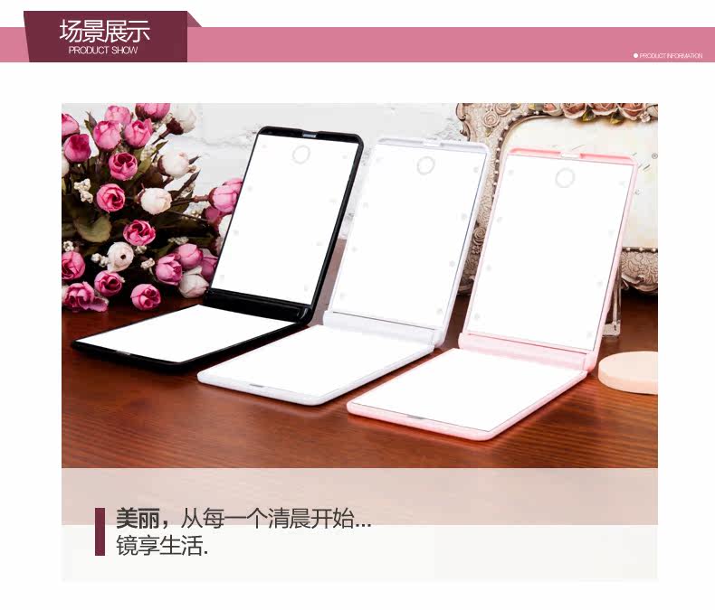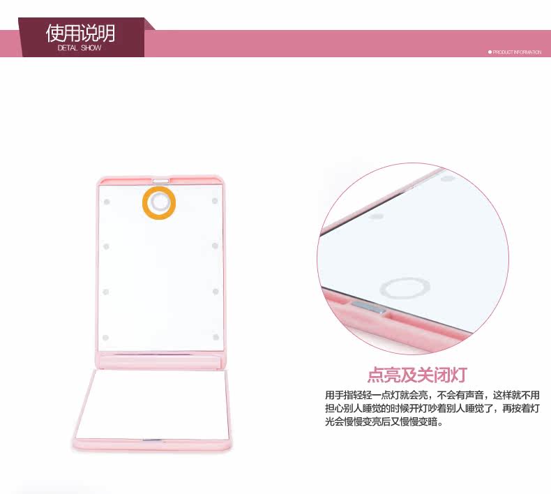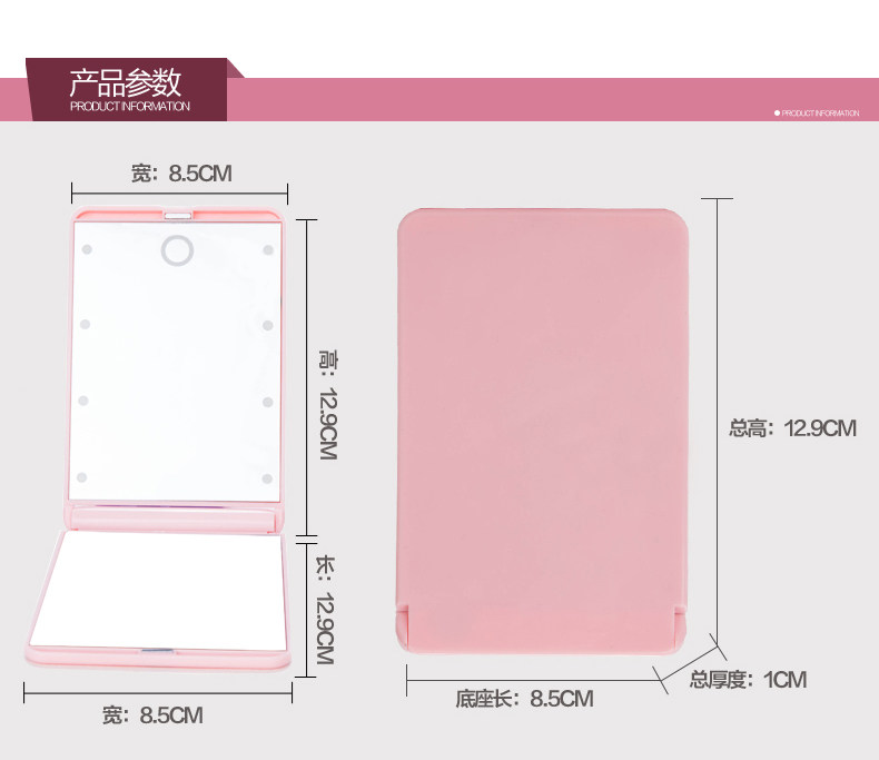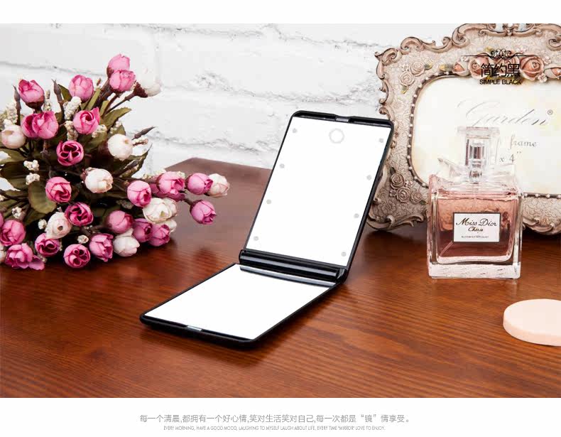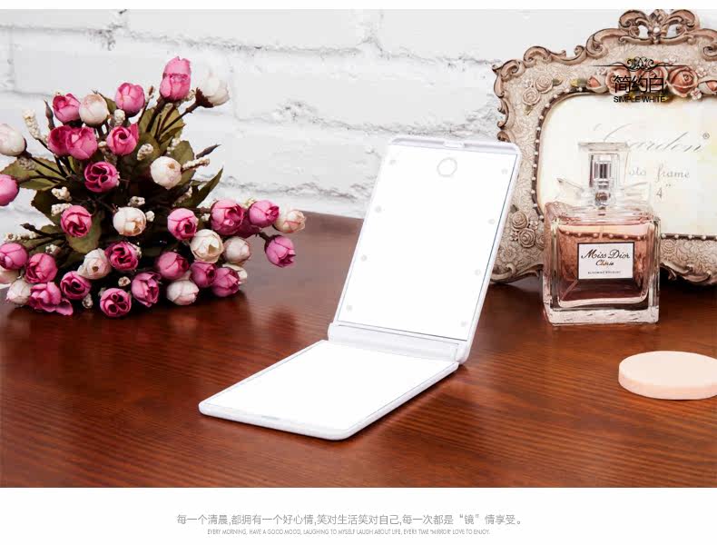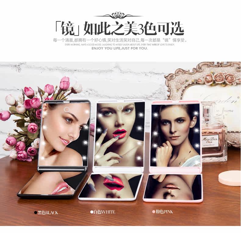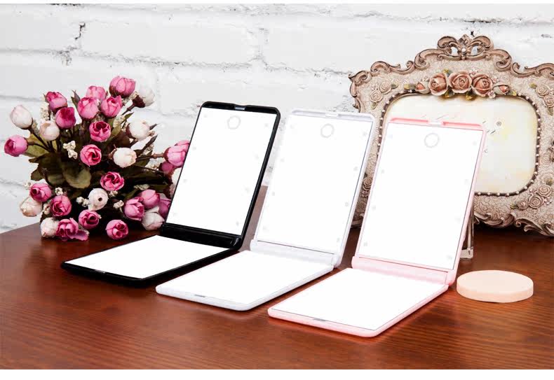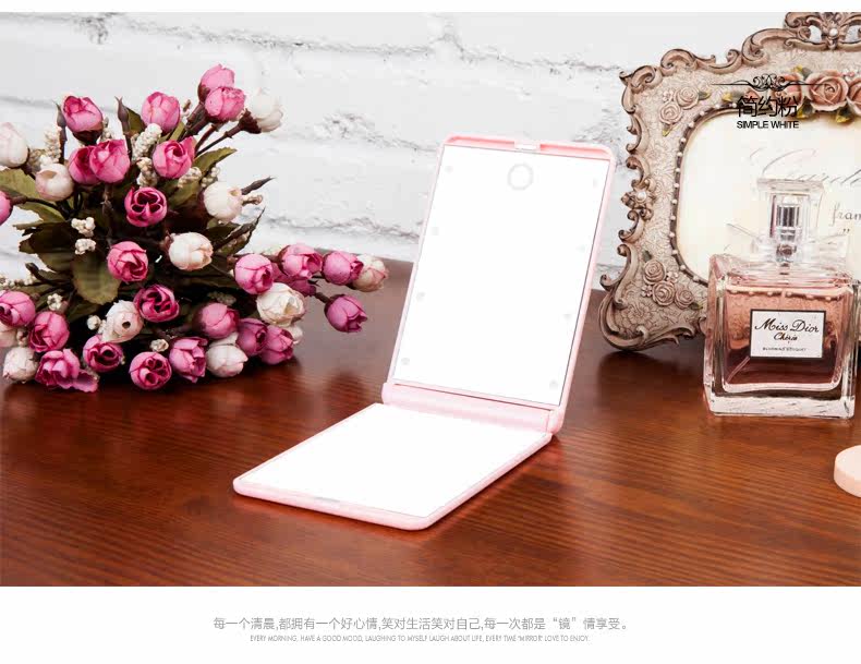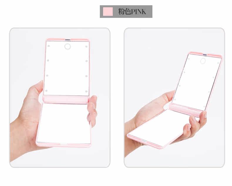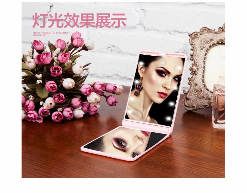 LED带灯化妆镜 随身折叠双面梳妆镜子简约便携公主小号迷你台式镜