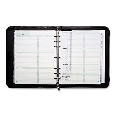 -. Feature : High-quality bonded leather that provides a polished, professional look / Undated calendar pages provide a sampling of popular daily and weekly formats / Each month is tabbed and provides a multiyear calendar reference for filling in the dates / Tabbed address/phone directory for quick look-ups / Accessories include business/credit card holder, note pad, vinyl zip pouch and reference pages