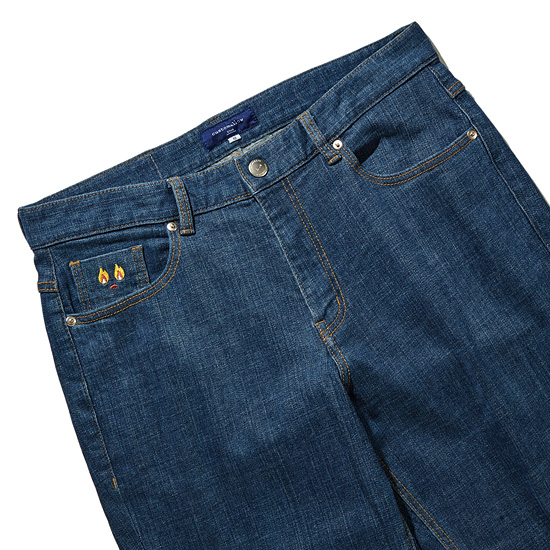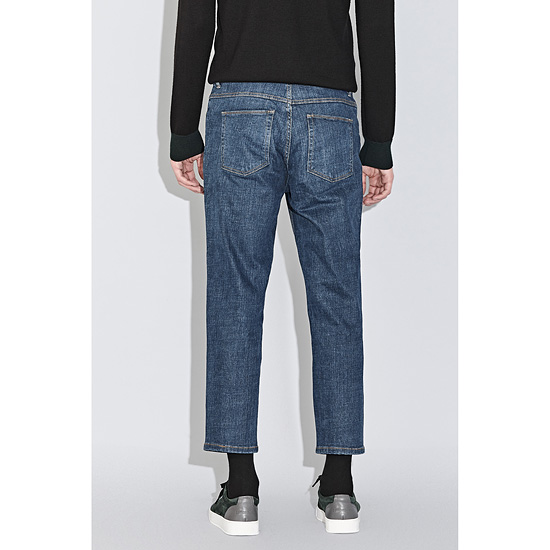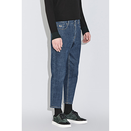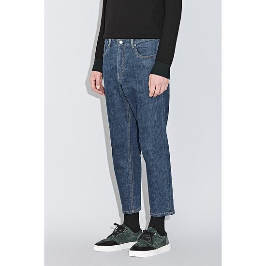 - 내츄럴한 워싱이 돋보이는 블루라벨 데님 라인의 배기핏 데님 팬츠.