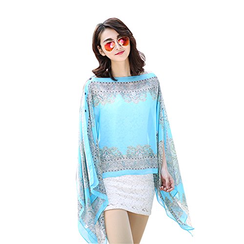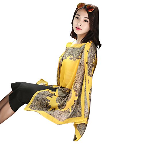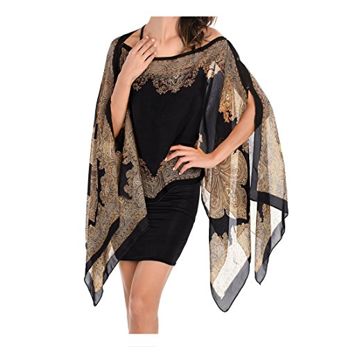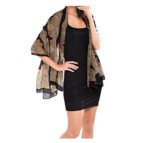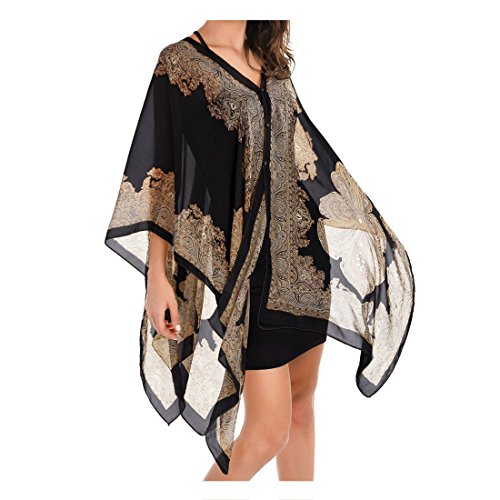 TOOGOO(R) Cashew Chiffon series Printing button shawl Black