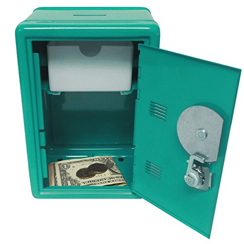 Kid’s Coin Bank Locker Safe with Combination Lock and Key – 7” High Teal